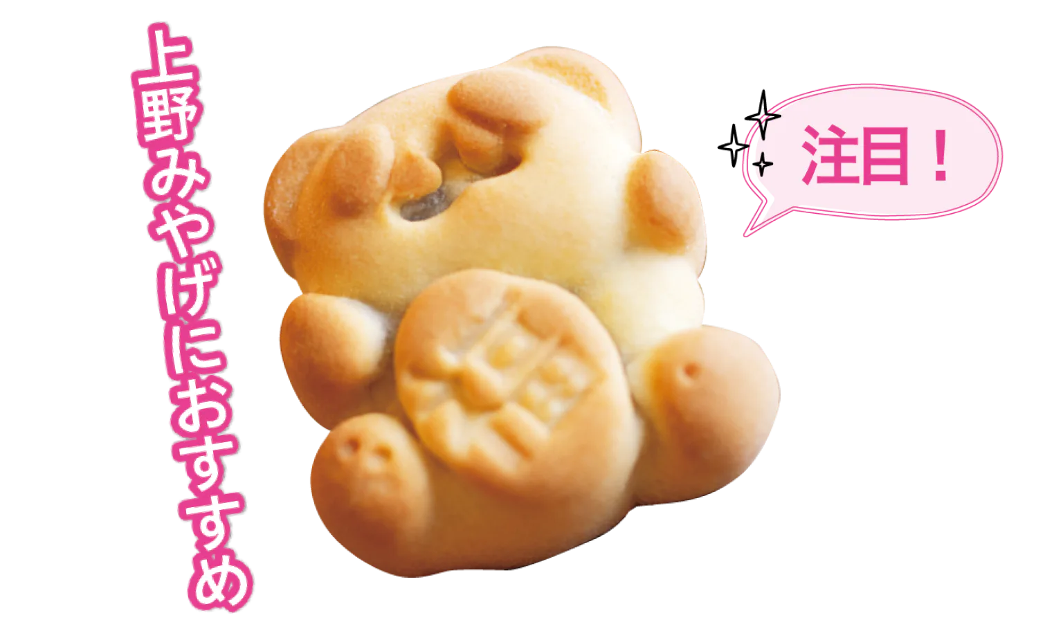 パンダのツートンカラーを焼き色の違いで表現。中にはミルク餡が詰まっており、その中心にはさわやかな風味のアンズジャムが入っている。
