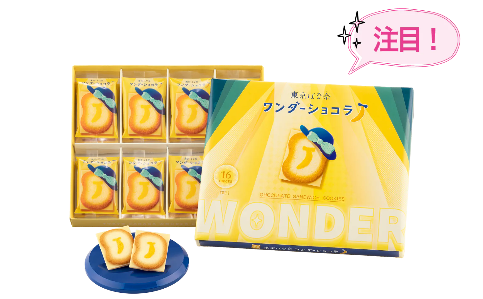 東京ばな奈オリジナルのミルキーなバナナショコラを、味わい、食感共に相性抜群のサクサクラングドシャクッキーでサンド。