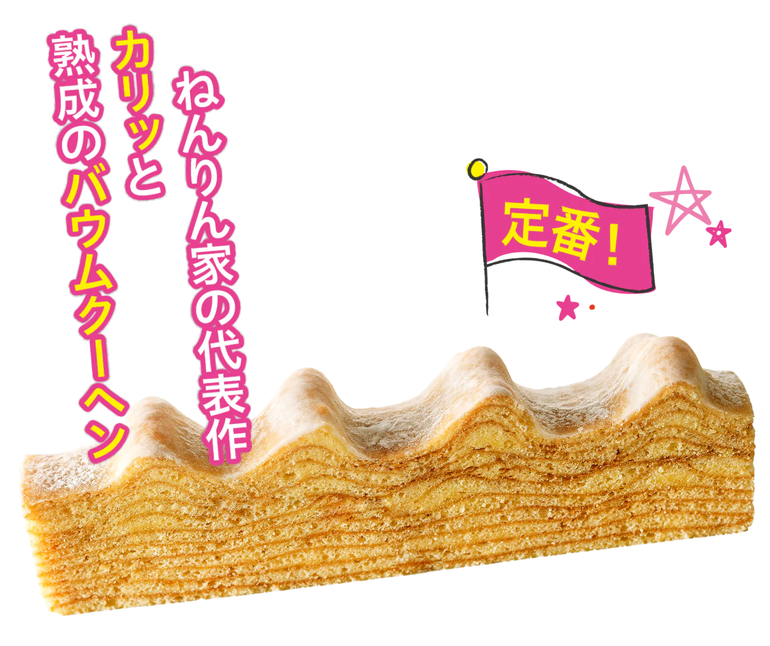 皮はカリッと香ばしく、中はしっとり熟成。独自の窯で長時間じっくり焼きあげておいしさを引き出した、こだわりのバームクーヘン
