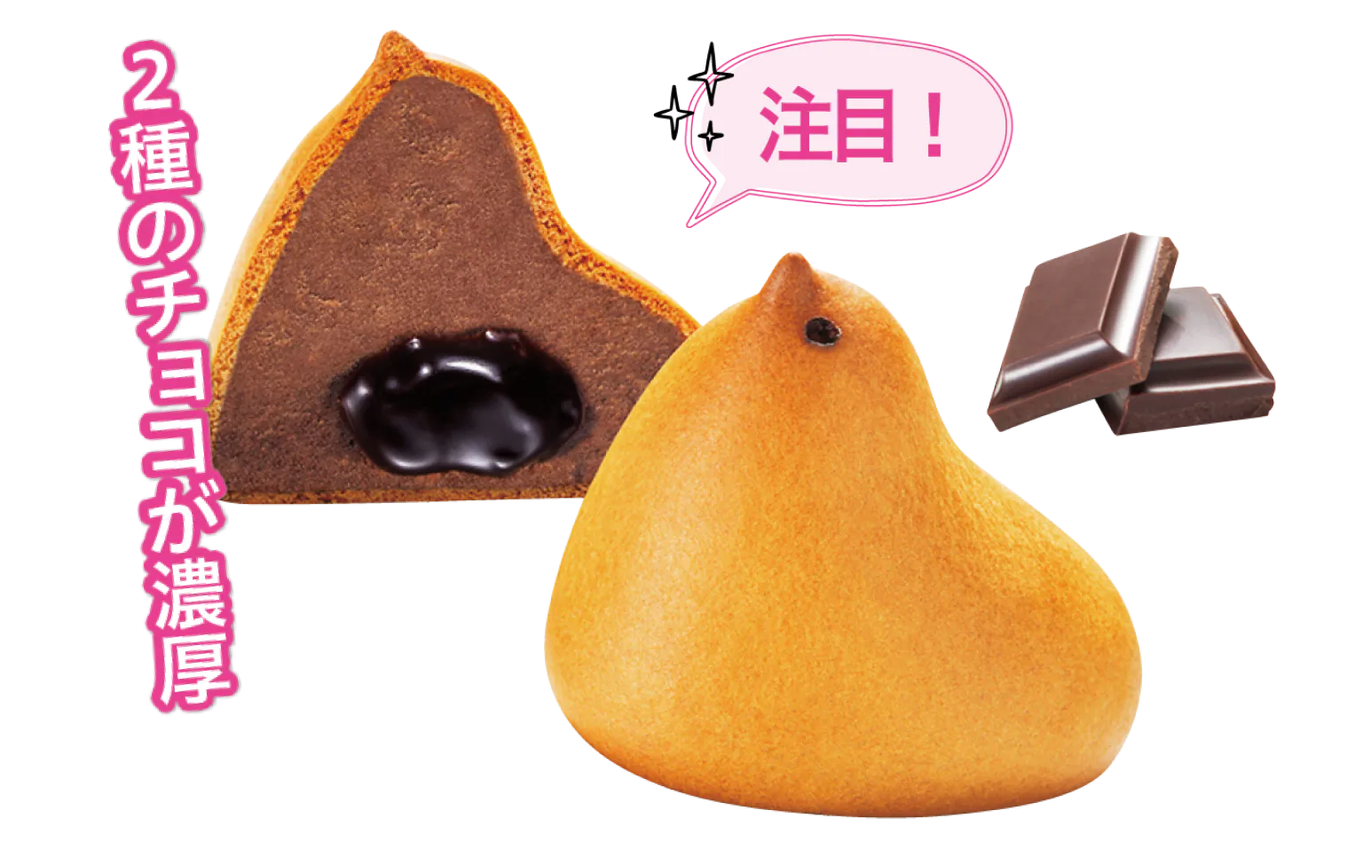 香ばしい皮の中には、純白になるまで丹念にさらした白雪餡を使ったチョコレート餡がたっぷり。餡の中には濃厚なチョコレートも。