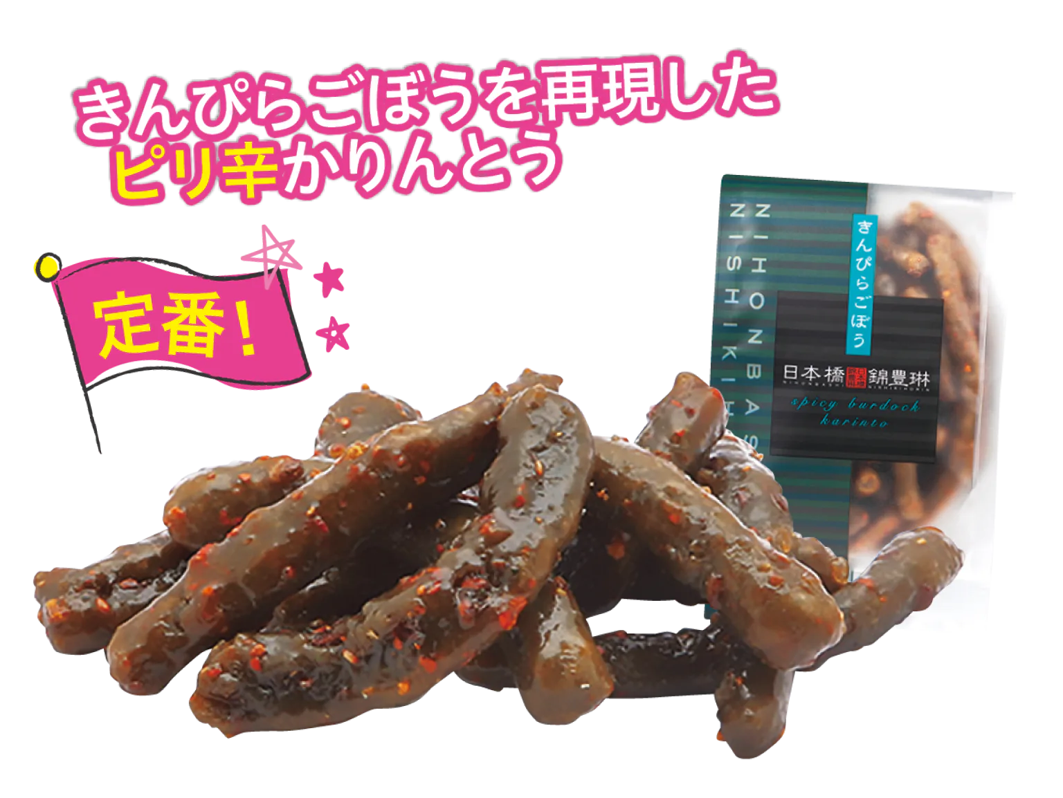 かりんとうながらも七味の辛みが利いた、一番人気の商品。ごぼうの粉末を練り込んでおり、つまみとしてもおすすめ。