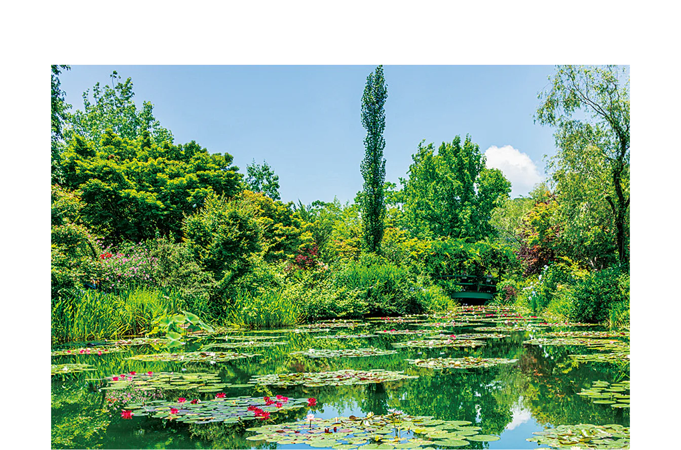 画家クロード・モネが愛した庭を再現。青いスイレンをはじめ季節の花が咲き乱れる