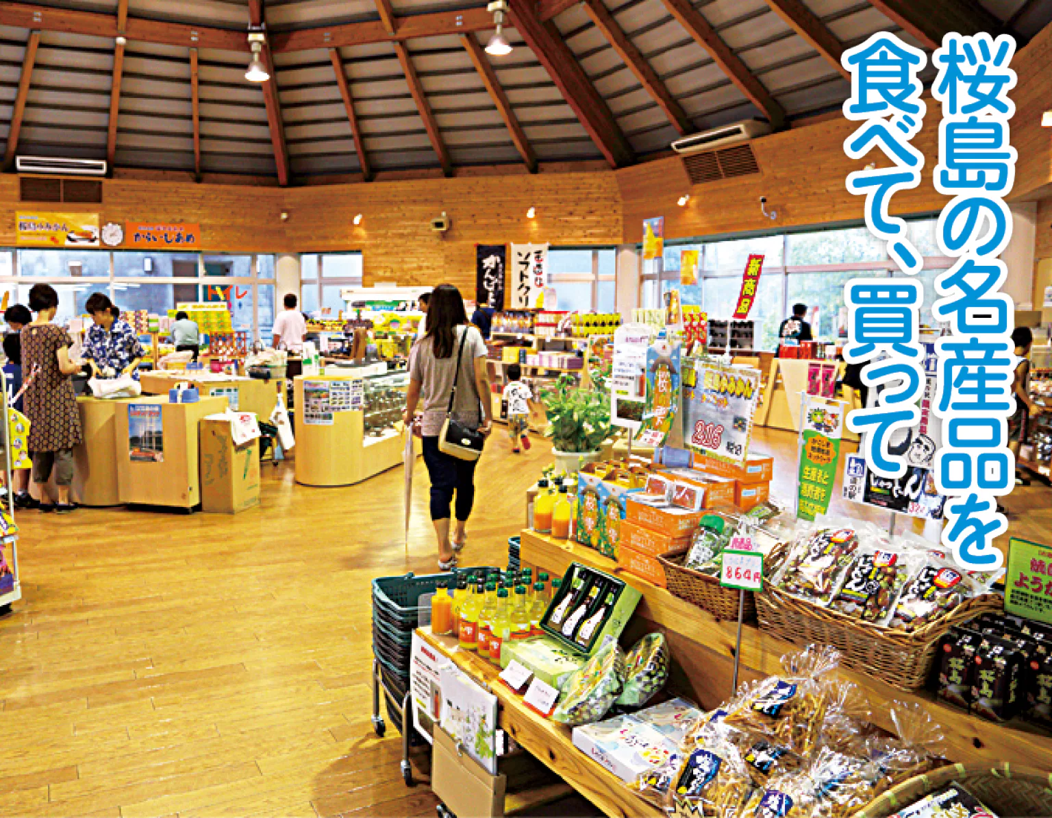 桜島大根の加工品や桜島溶岩グッズ、びわ、椿油など、桜島の特産品を揃えた物産館で、みやげ探しに最適。小みかんを使ったグルメも人気。