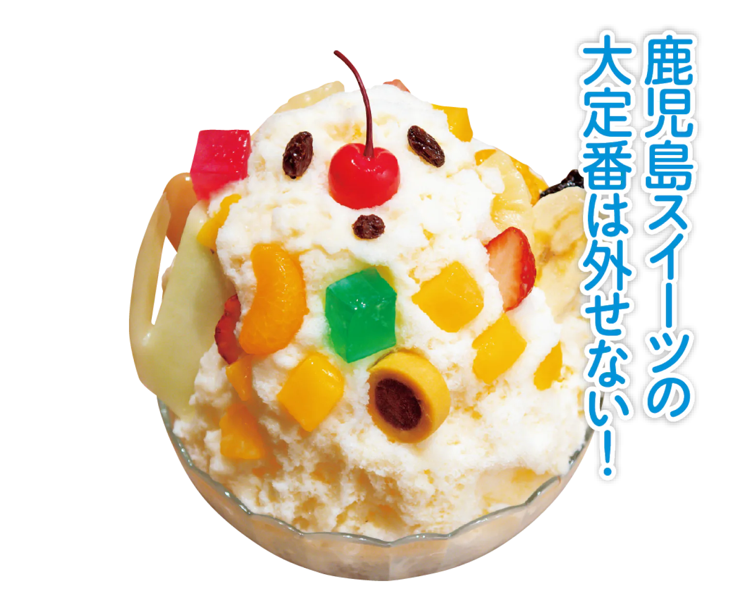 鹿児島のソウルフードともよばれる「白熊」。ボリューミーで熊の顔をした愛らしい見た目の虜に。ふわふわのかき氷と秘伝の自家製ミルクの相性が抜群!