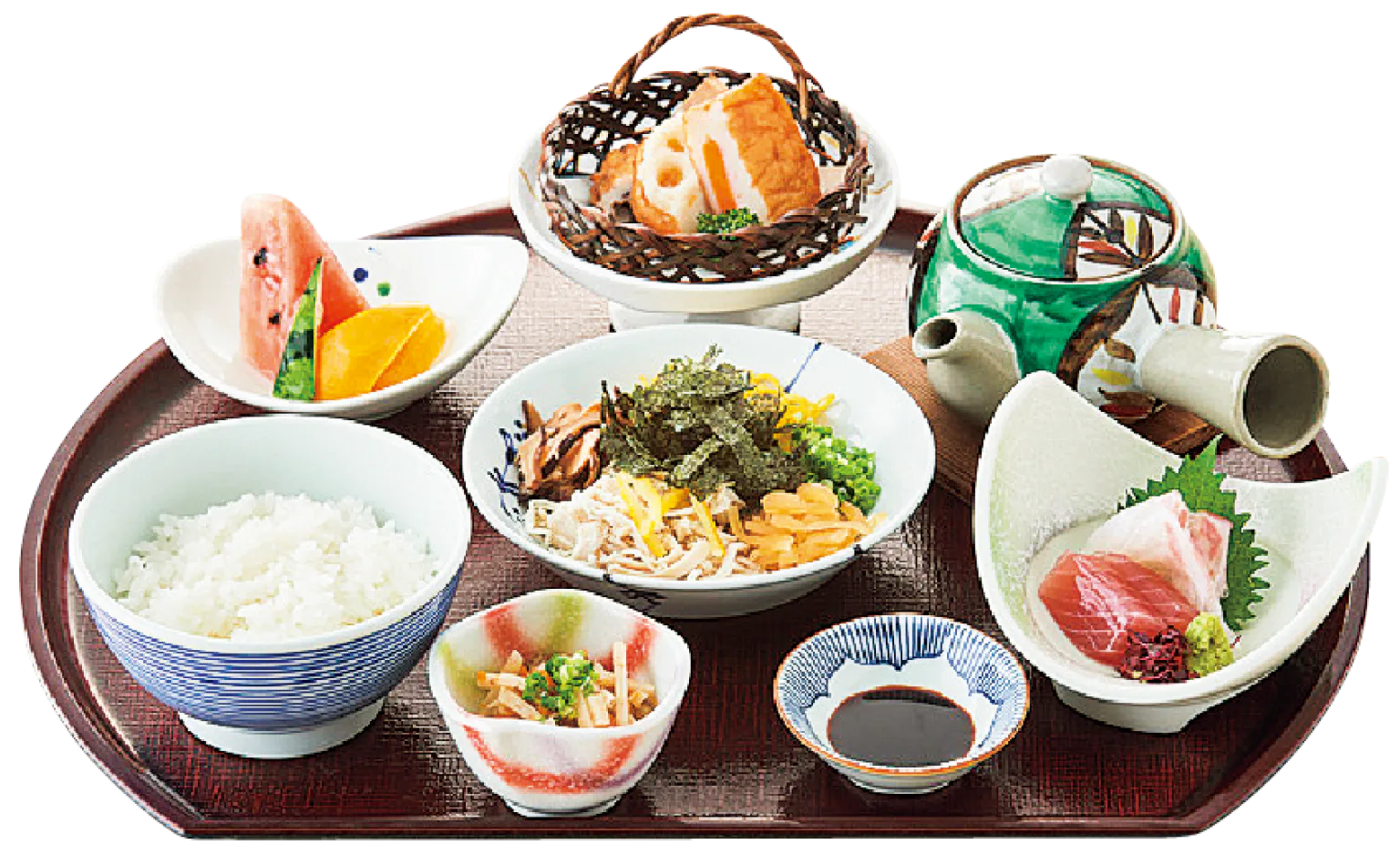 錦江湾に浮かぶ雄大な桜島を眺めながら、薩摩の郷土料理を楽しめる絶景レストラン。地元の食材を使った四季折々の和膳を提供する。