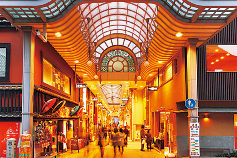 約60店舗が軒を連ねる温泉街のメインアーケード・道後ハイカラ通り