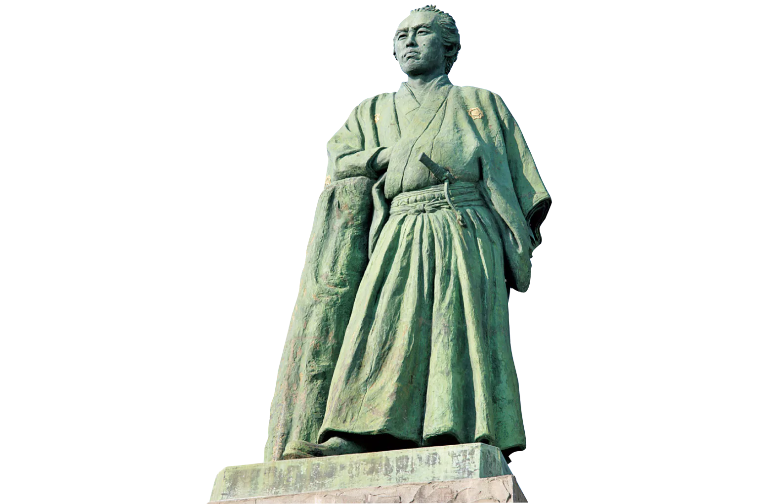 懐に手、袴にブーツ姿の有名な龍馬像は、総高13.5mの巨大な像。海の彼方を見晴らす龍馬像。毎年、4月と9月前後には展望台が設置され、龍馬と同じ目線に。