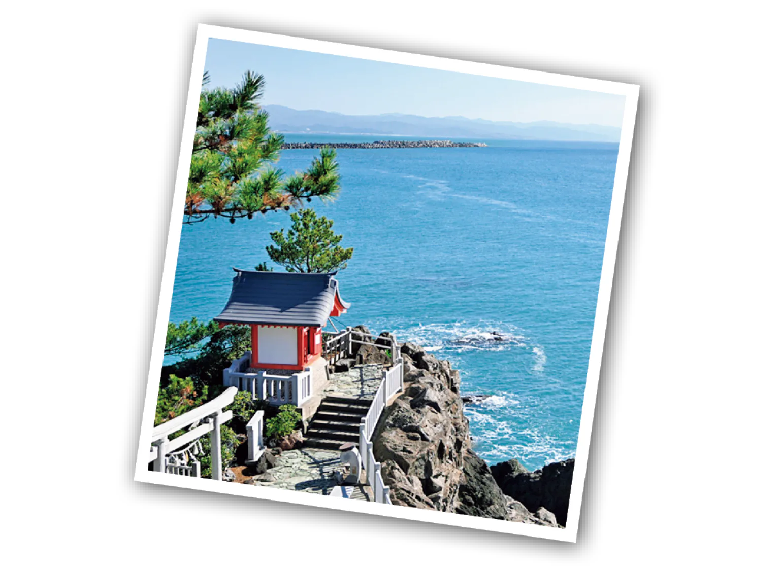 桂浜南端にある龍王岬。海津見神社が鎮座し、近くに展望台も