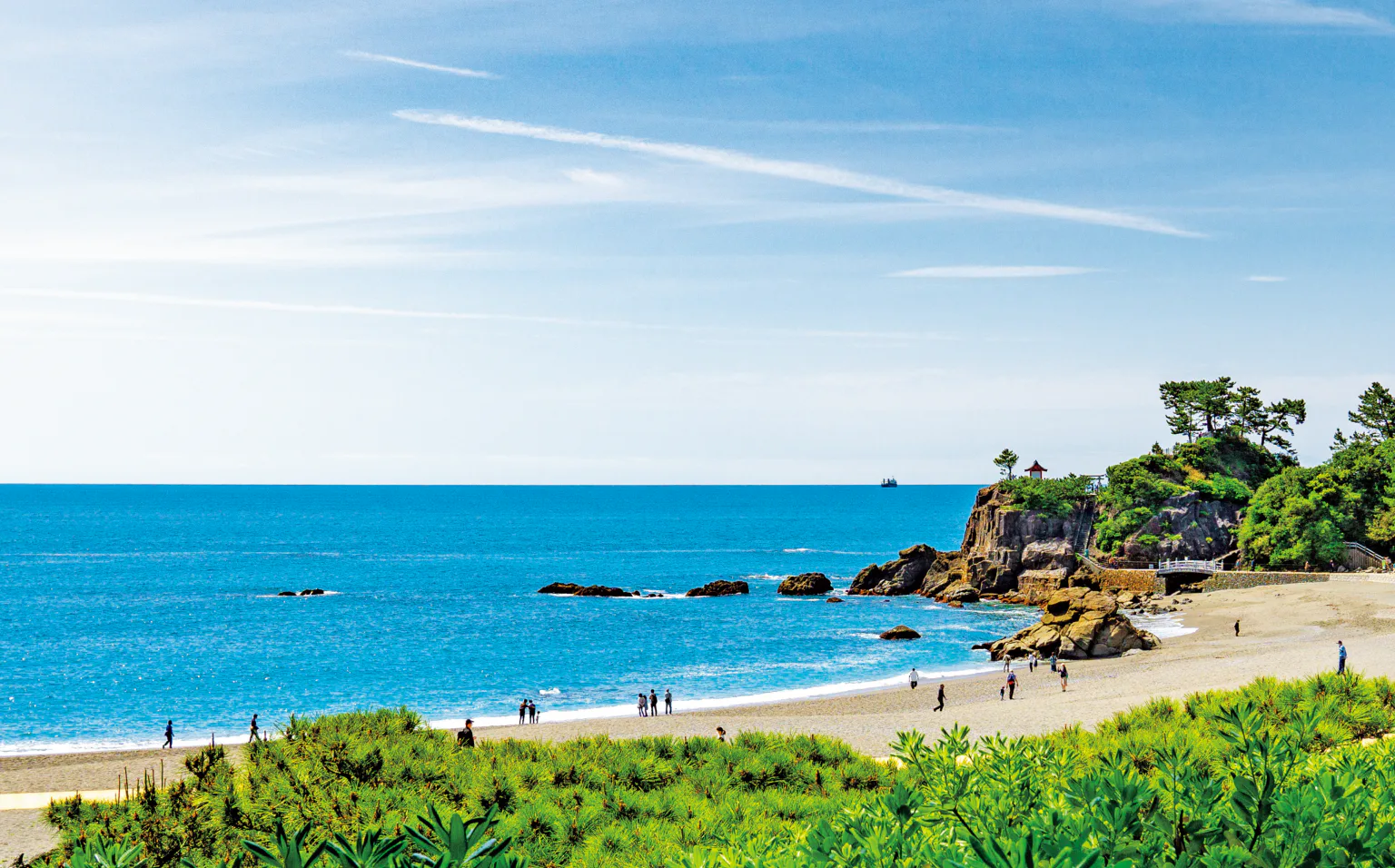 弓状の海岸線が優美な桂浜。紺碧の海と松が見事な景観を織りなす