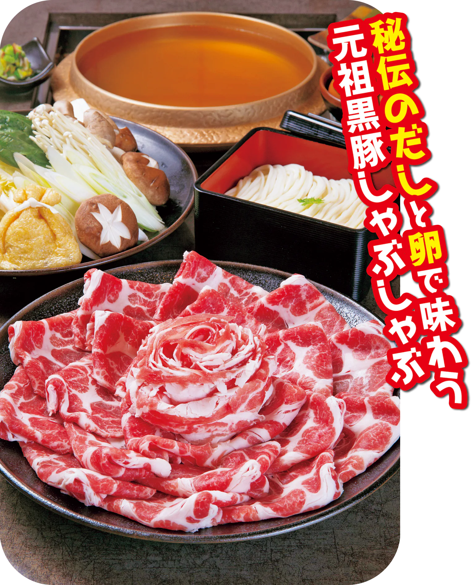 黒豚しゃぶしゃぶを全国に広めたパイオニア的名店。薄切りの黒豚をだし汁にくぐらせて食べるスタイルで、肉のうま味を余すことなく堪能できる。とんかつやステーキも提供。