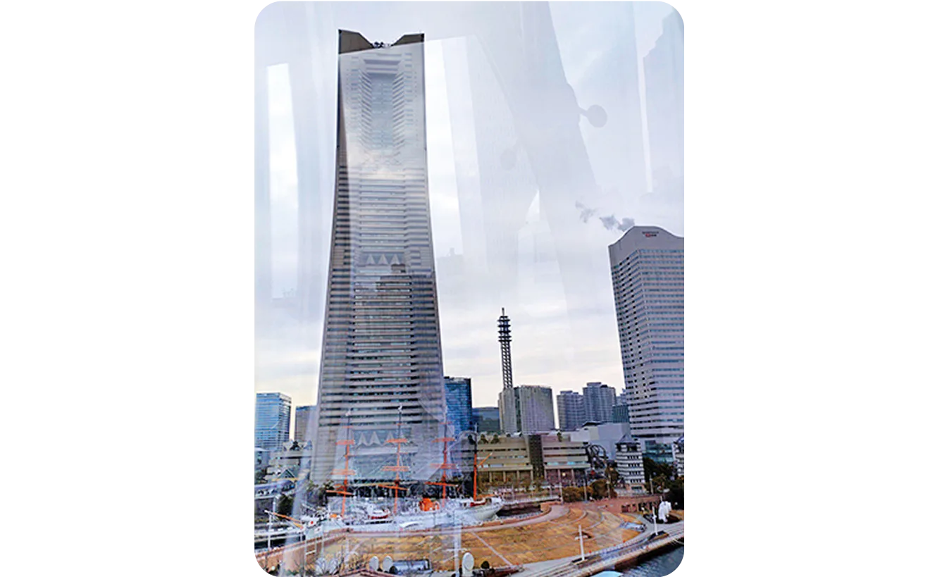 後方の左手には「横浜ランドマークタワー」がそびえ立つ