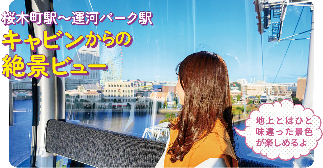 日本初の都市型循環式ロープウェイがみなとみらいにある。JR桜木町駅前から運河パークまで、片道630m、約5分の空の旅に出発しよう!
