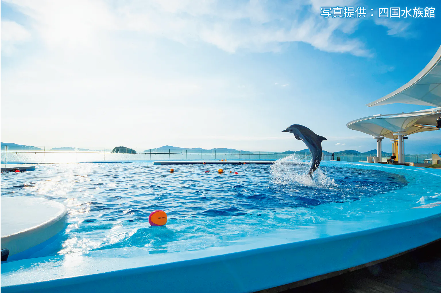 瀬戸内海や太平洋、四国の清流など、四国が誇る水中世界を表現する水族館。みどころは、瀬戸内海を背景に躍動するマダライルカや、黒潮を旅する魚たちの展示など。