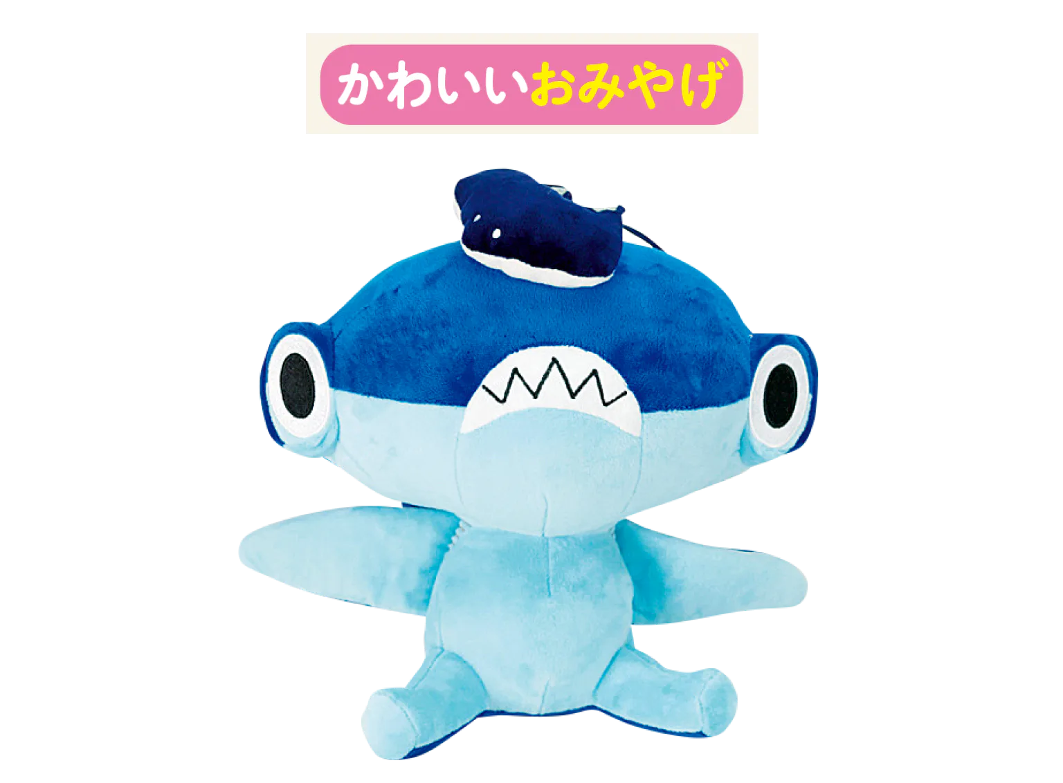 四国水族館のミュージアムショップでオリジナルのかわいいアイテムを発見!写真のしゅこくんぬいぐるみなど種類豊富!
