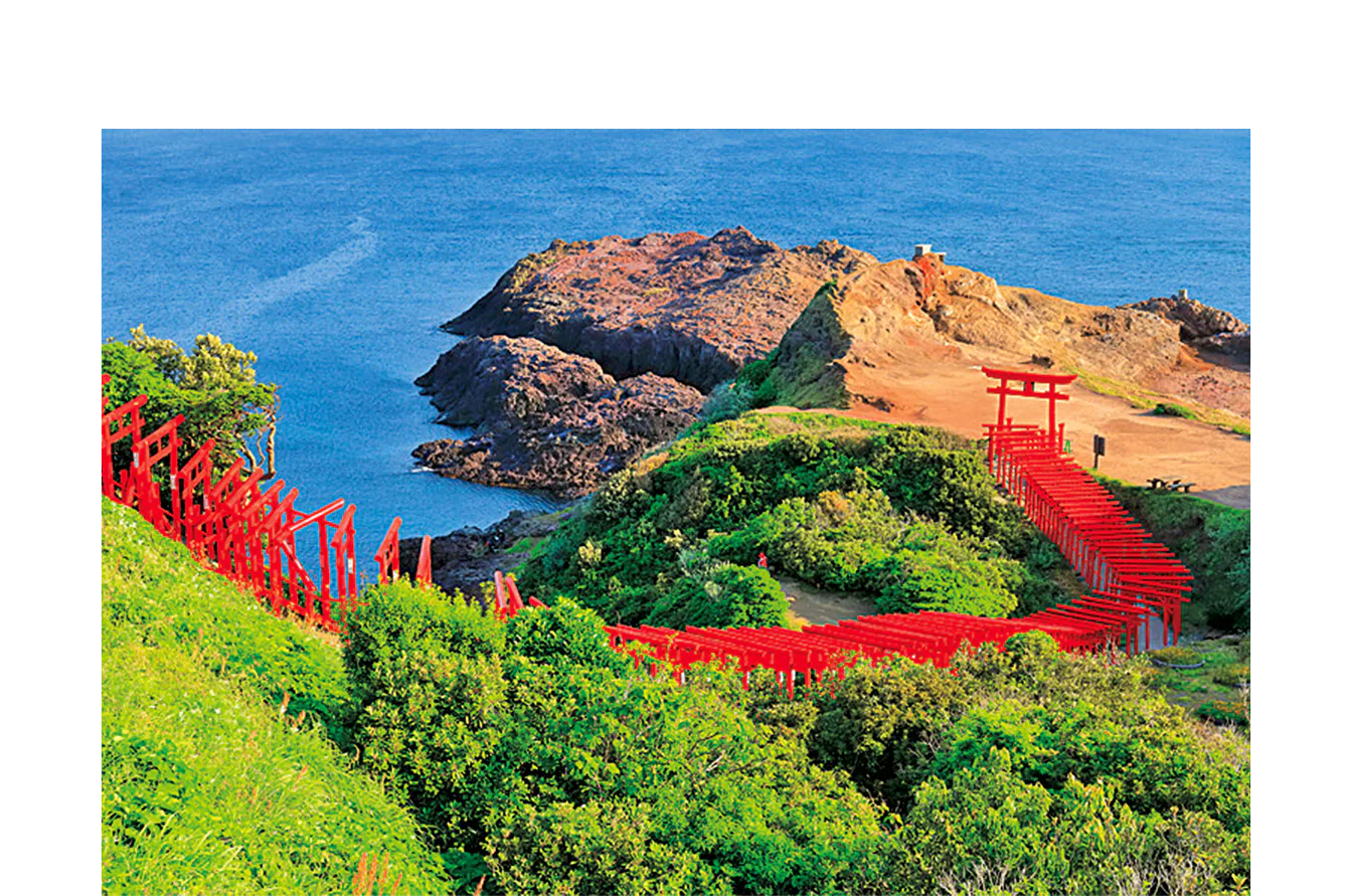 日本海に123基の鳥居が映える絶景スポット。日本海の青と朱塗りの鳥居のコントラストが見事