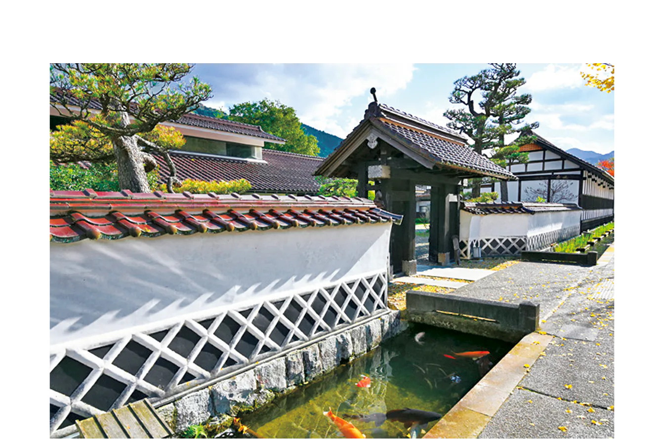 江戸時代に商都として栄え、白壁と本瓦葺きの商家が立ち並ぶ。