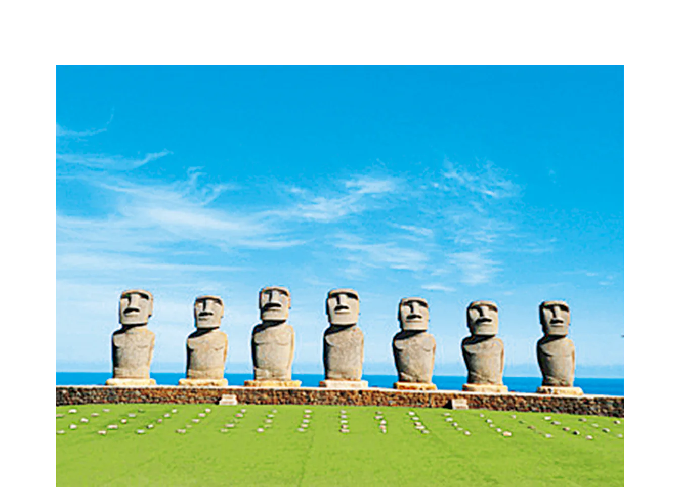 太平洋をバックにたたずむモアイ像が人気。