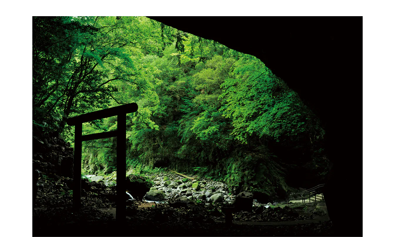 アマテラスオオミカミは、地上界の「葦原(あしはら)の中つ国」を治めるため、孫のニニギノミコトを遣わすことに。ニニギノミコトは三種の神器を携え、お供の神々とともに「日向の高千穂の槵觸の峯」に降り立った。この天孫降臨の地については、高千穂町と霧島山の高千穂峰の説がある。