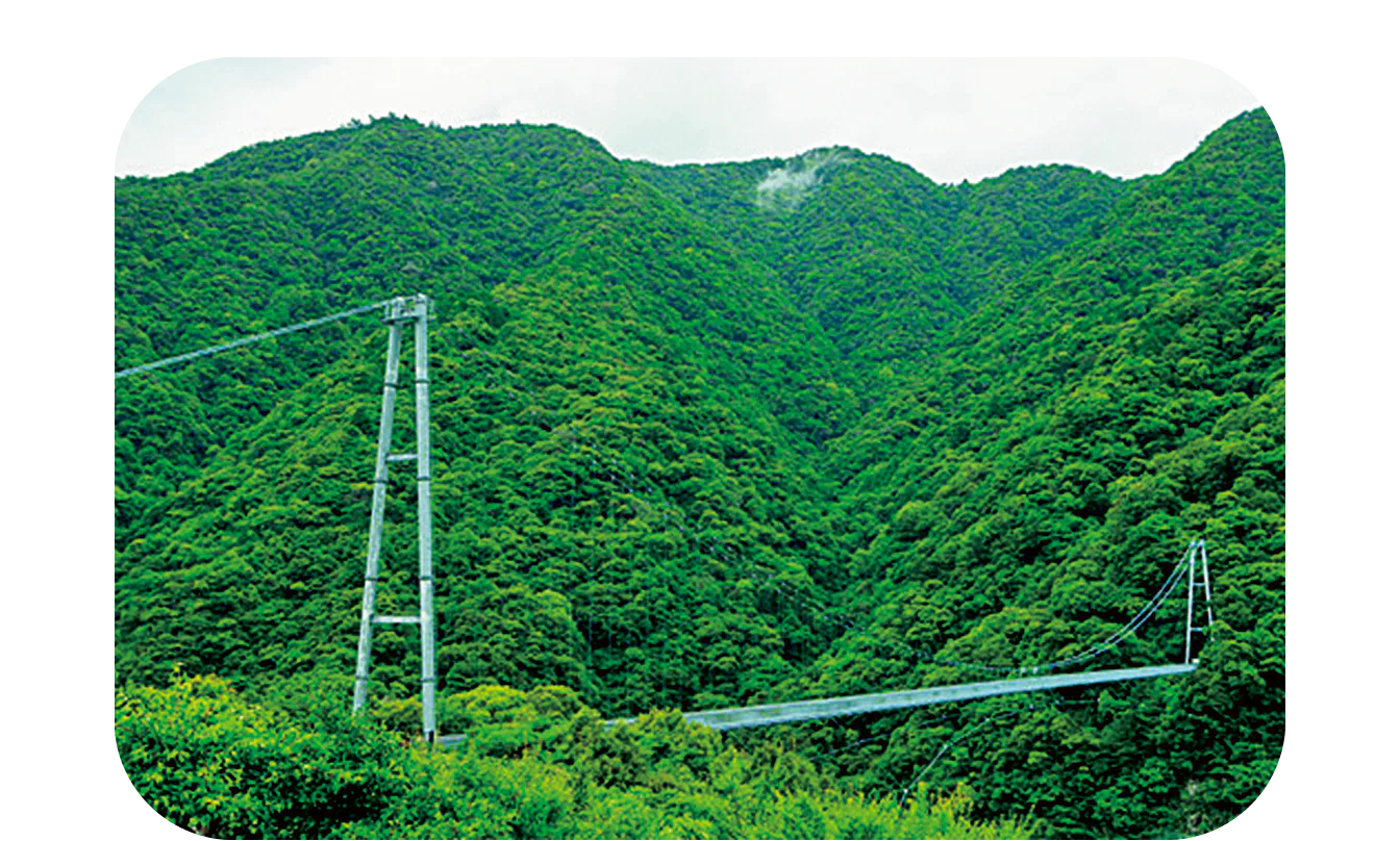 日本最大級の照葉樹林が広がる豊かな自然はユネスコエコパークに登録され、エコツーリズムやものづくりが盛んな町。南北朝時代に築城された綾城もみどころ。