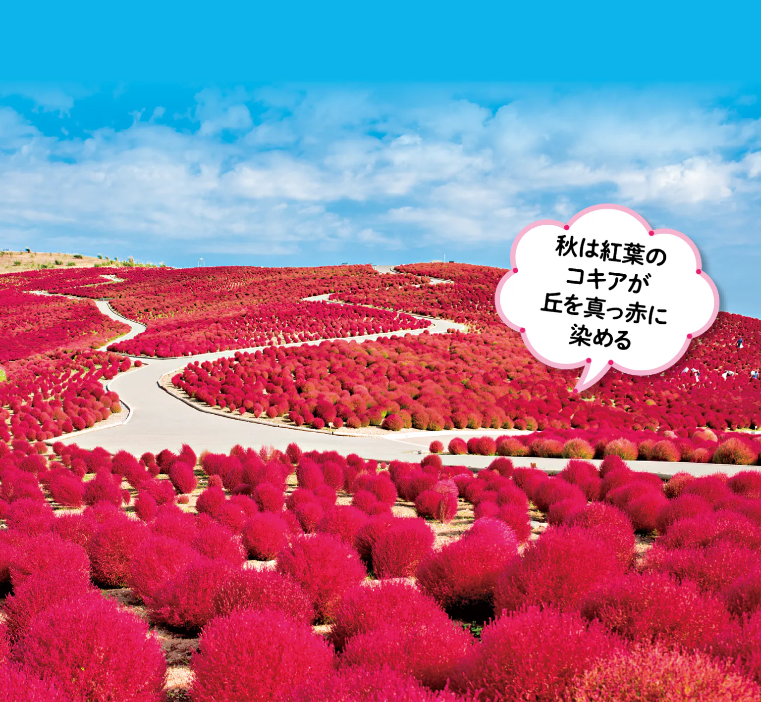 季節ごとに花が咲く、茨城が誇る絶景ポイントへ。園内には遊園地やアスレチックで遊べるエリアも。