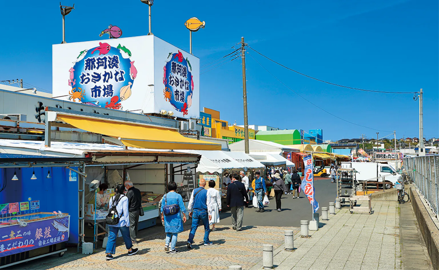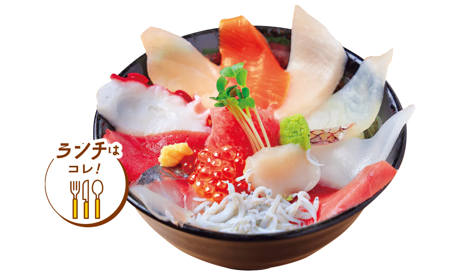 活気ある市場の中で、鮮度抜群の魚介が豪華に盛られた海鮮丼や定食をいただこう。おみやげも忘れずに。