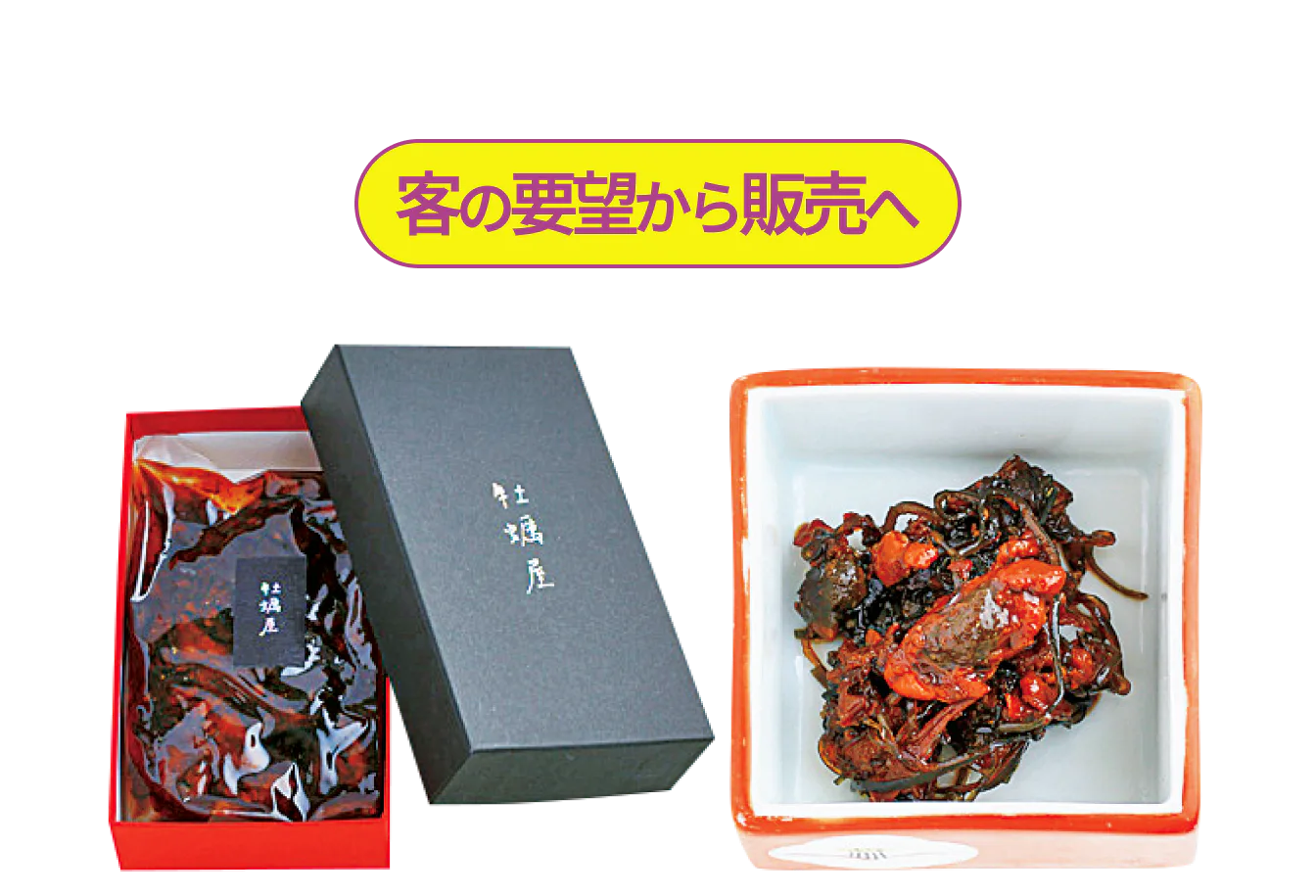 刻んだカキを甘辛く炊く。自家製カキ魚醤と山椒でさらにコク深い味わいに。