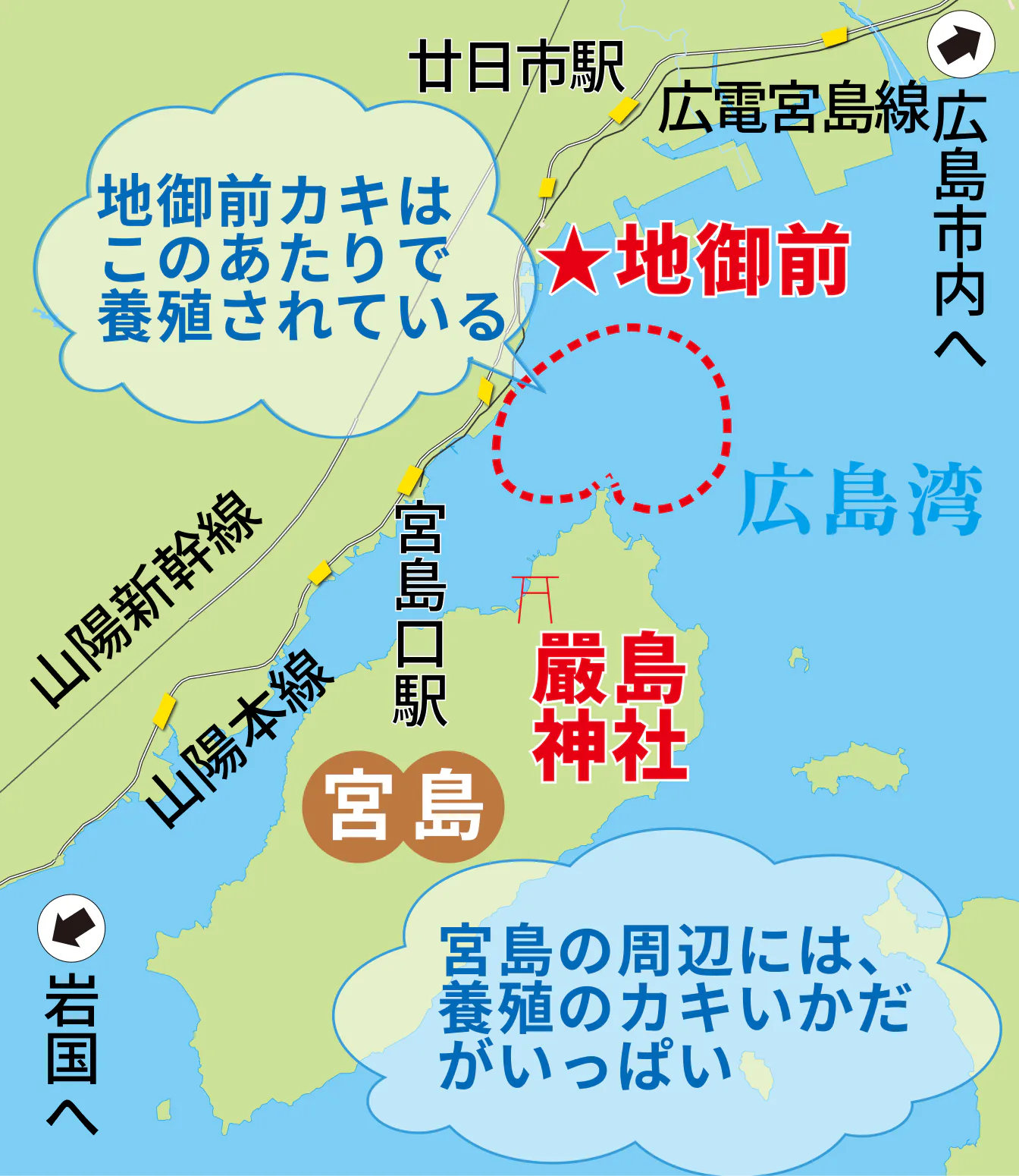 広島は全国のカキ生産量の6割を占める、一大産地。なかでも養殖のカキいかだが周囲に点在する宮島ではぜひ味わっておきたい。