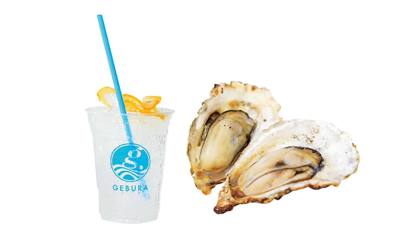 自家製レモンシロップをソーダで割った定番ドリンク。広島レモンの甘酸っぱさが焼きガキのうま味を引き出す。