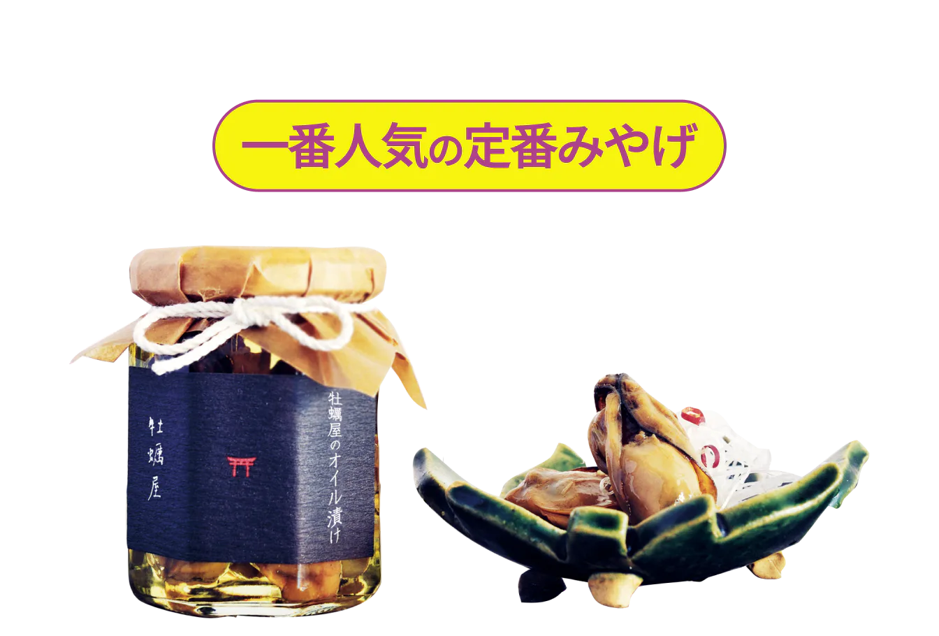 牡蠣屋のオールスターを堪能できる定食で、10個のカキをあらゆる調理法で提供する。オイル漬けやドレッシング、佃煮は購入も可能。