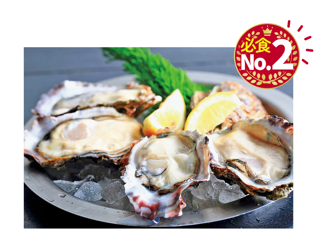 地御前産と宮島産のカキを扱う専門店で、大粒で食べごたえのある上質のカキが一年中味わえる。なかでもその日水揚げしたものを使う10月〜5月上旬の焼きガキや、11〜3月の生ガキは特におすすめ。