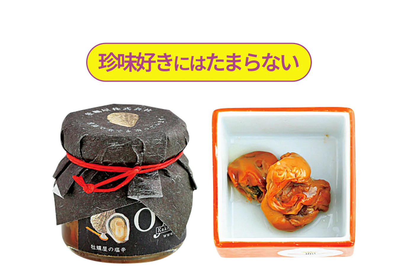 カキを塩のみで貯蔵熟成させた珍味。特にウイスキーとの相性がいい。