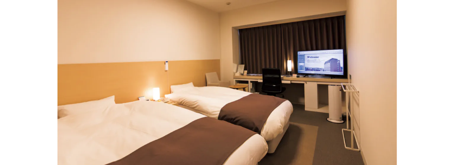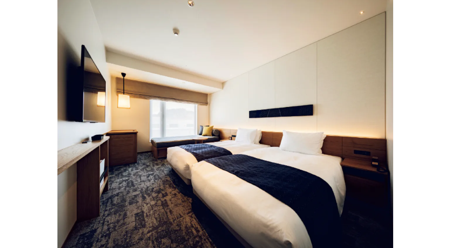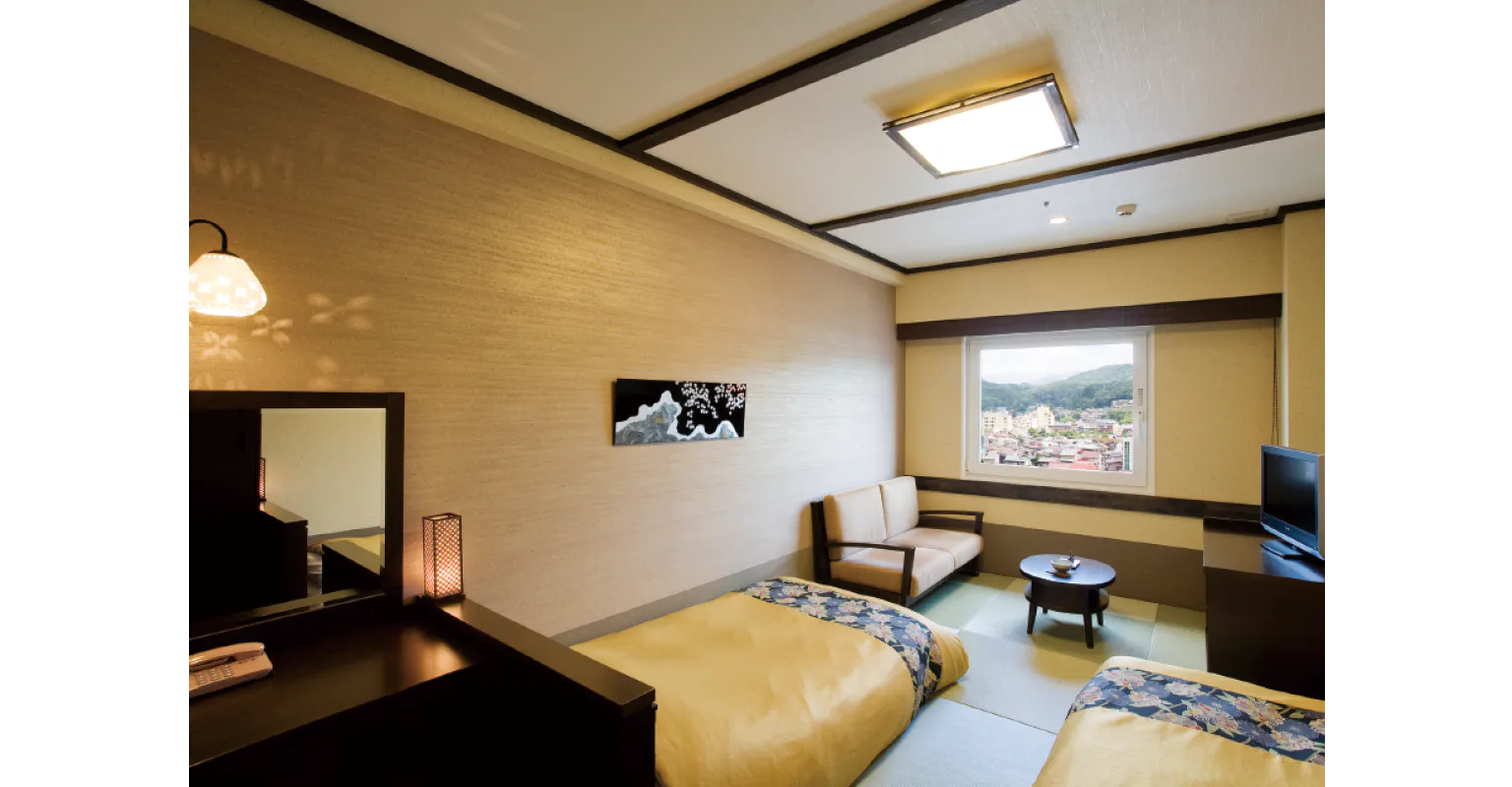 和ツイン一例。和のぬくもりと洋の快適性を備えた客室