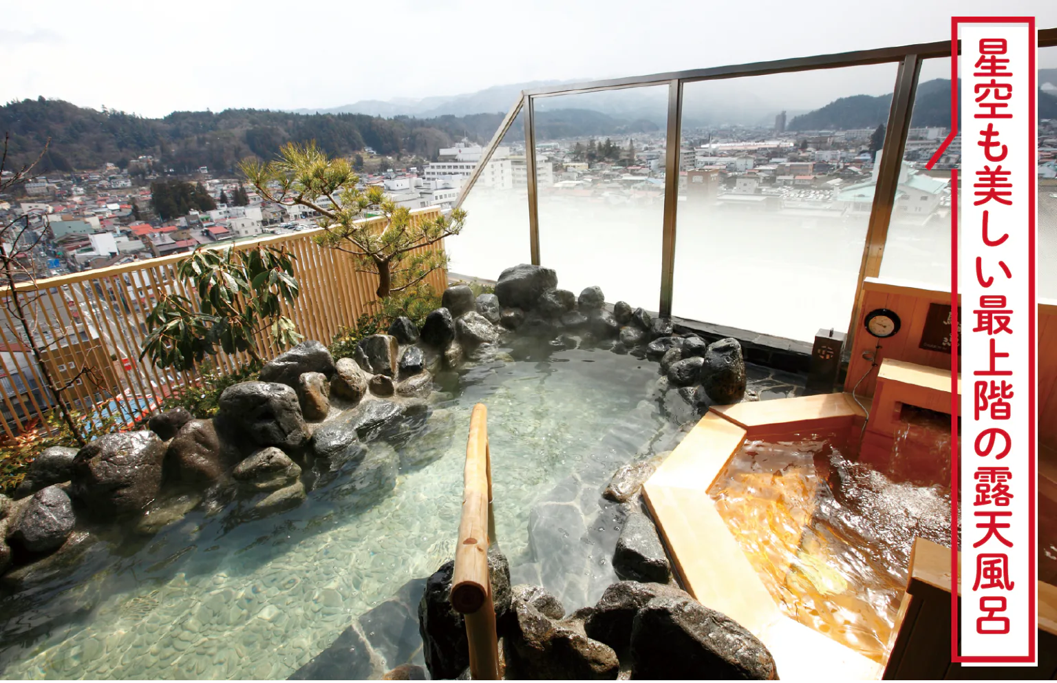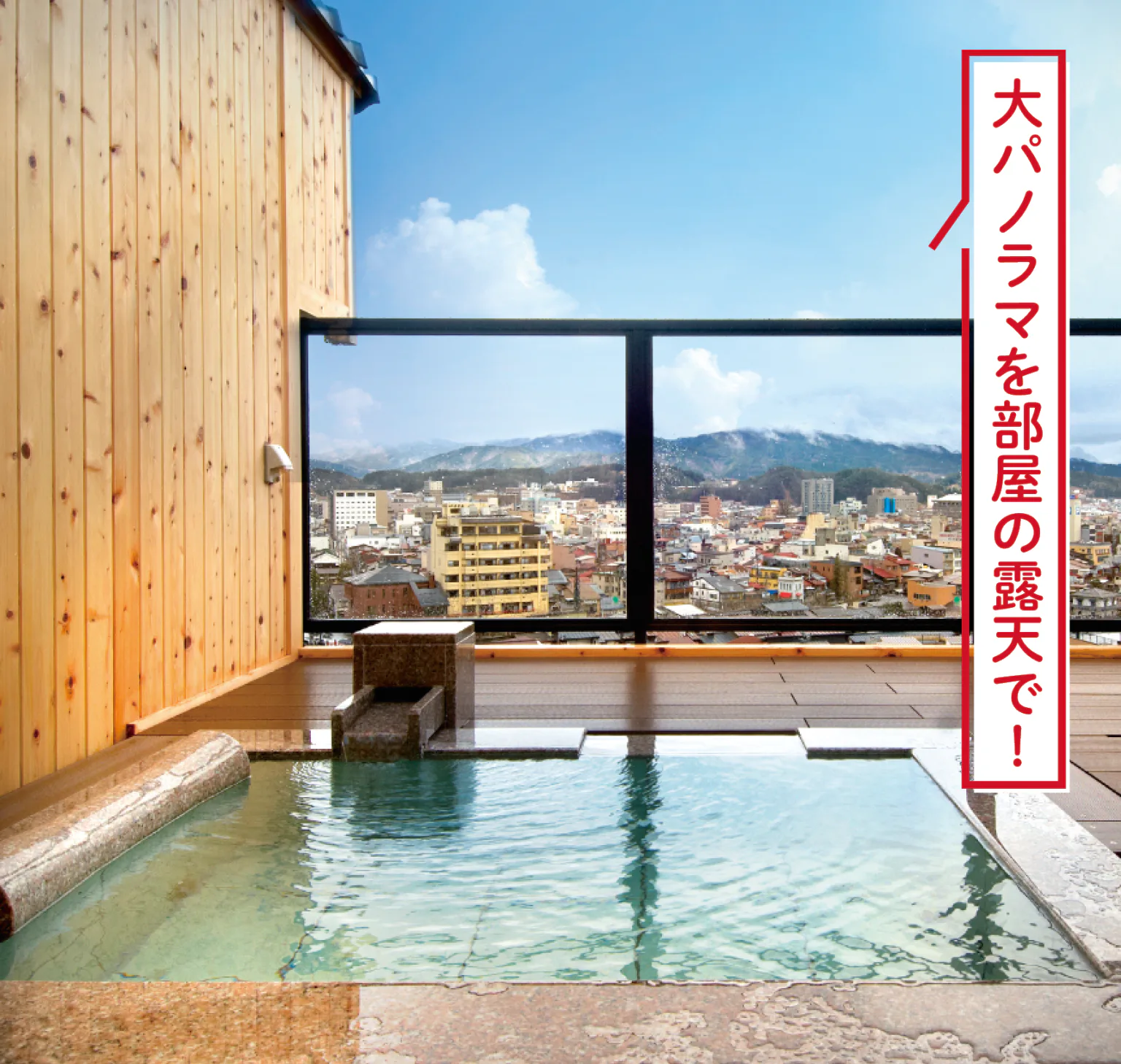 高山市街で最高層の展望露天風呂から絶景を見下ろせる