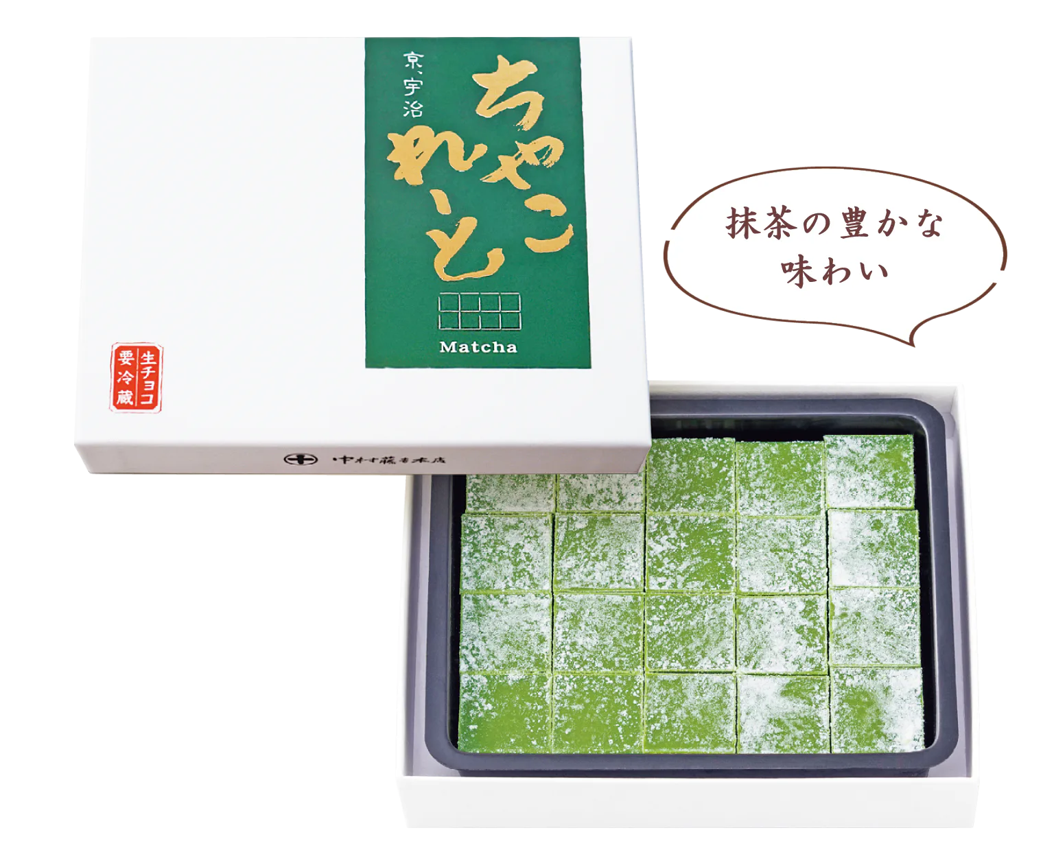 口どけの良いチョコレートと濃厚で香り高い抹茶を合わせている。見た目の美しさもポイント!