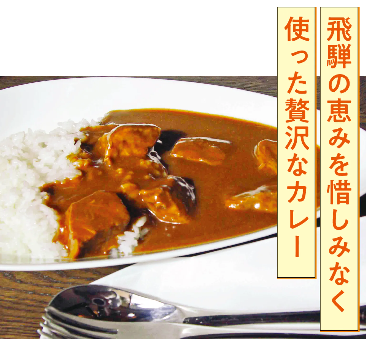 うま味がルーに溶け込んで絶品。飛騨産コシヒカリのご飯で贅沢に。