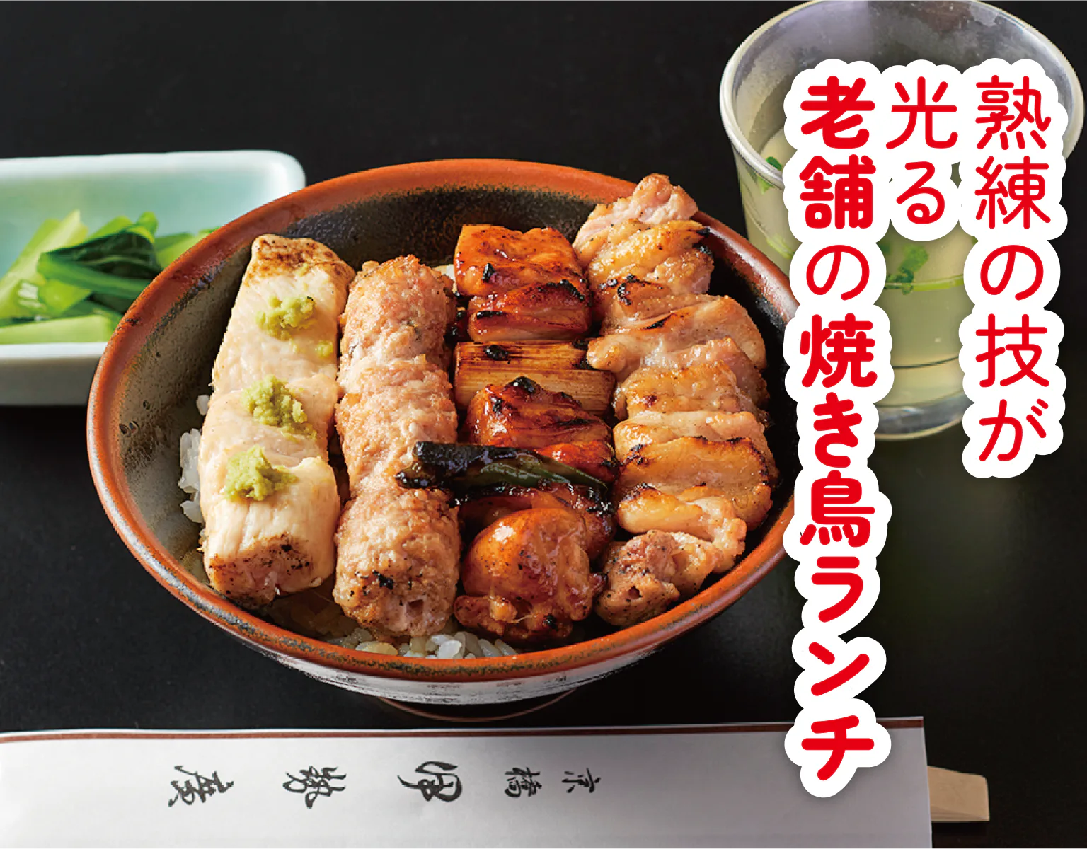 100年以上の歴史をもつ老舗の焼き鳥店。毎朝、一羽丸ごと仕入れて店でさばく鶏は鮮度抜群!熟練の職人による格別な味わいを堪能しよう。夜はコース料理のみ。1~3階のフロアにカウンター、テーブル、半個室などを設ける。