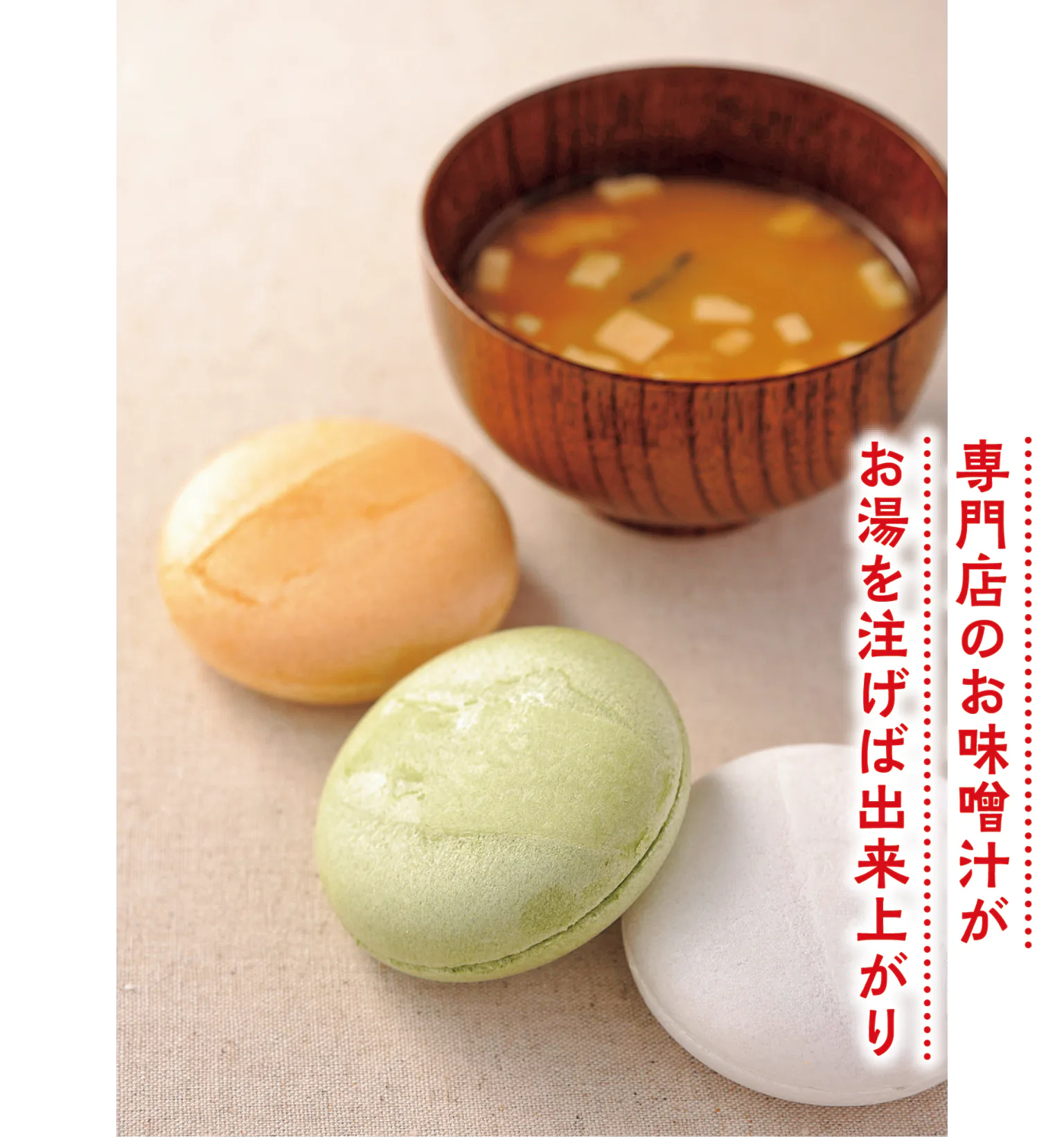 麩焼の中に入るのはフリーズドライにした味噌や具材。器に割り入れて熱湯を注げば完成!