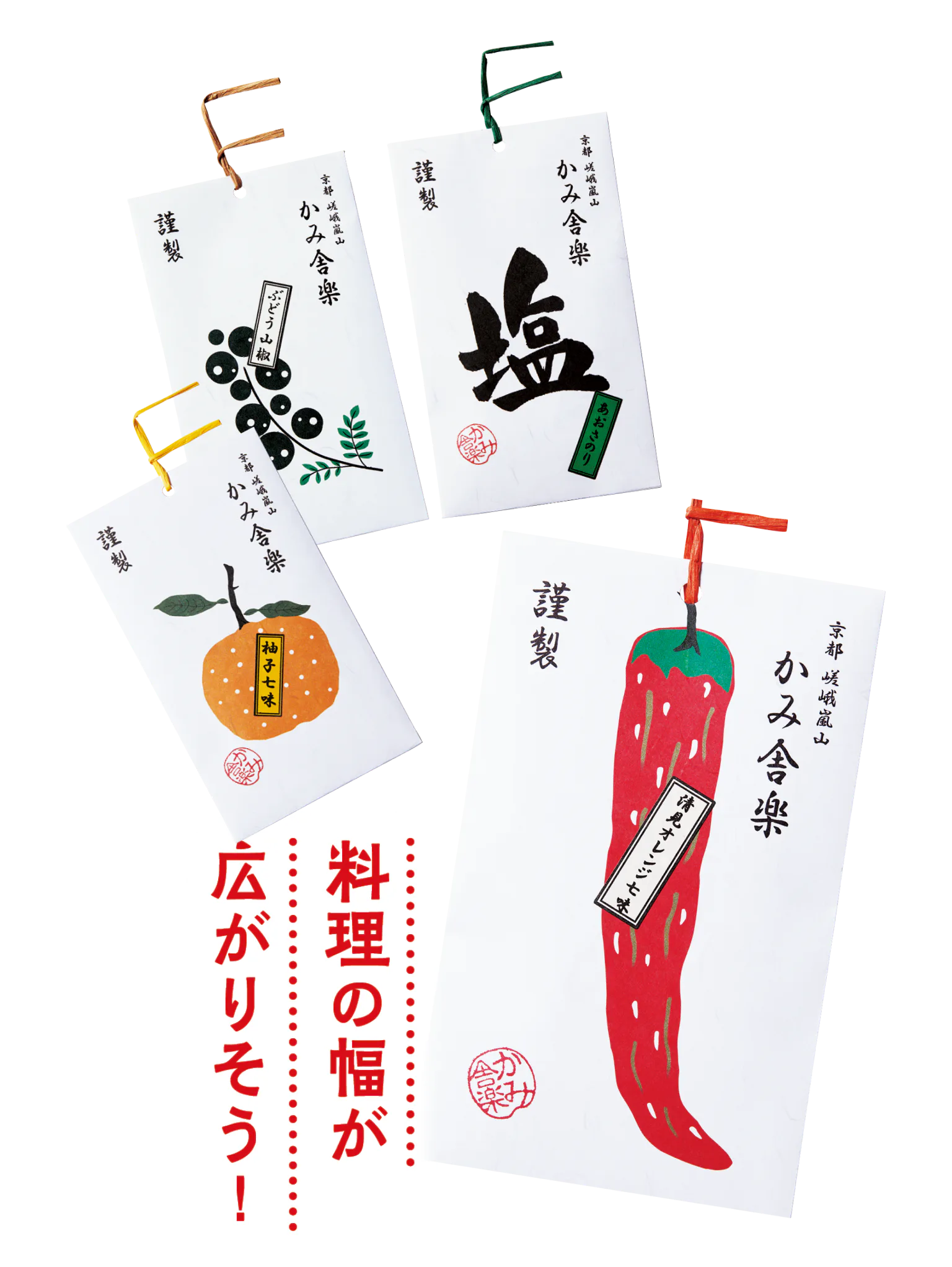 素材の風味を最大限に生かした七味や塩をはじめ、さまざまな調味料を扱う。和食はもちろん、洋食にも合うので使いやすい。