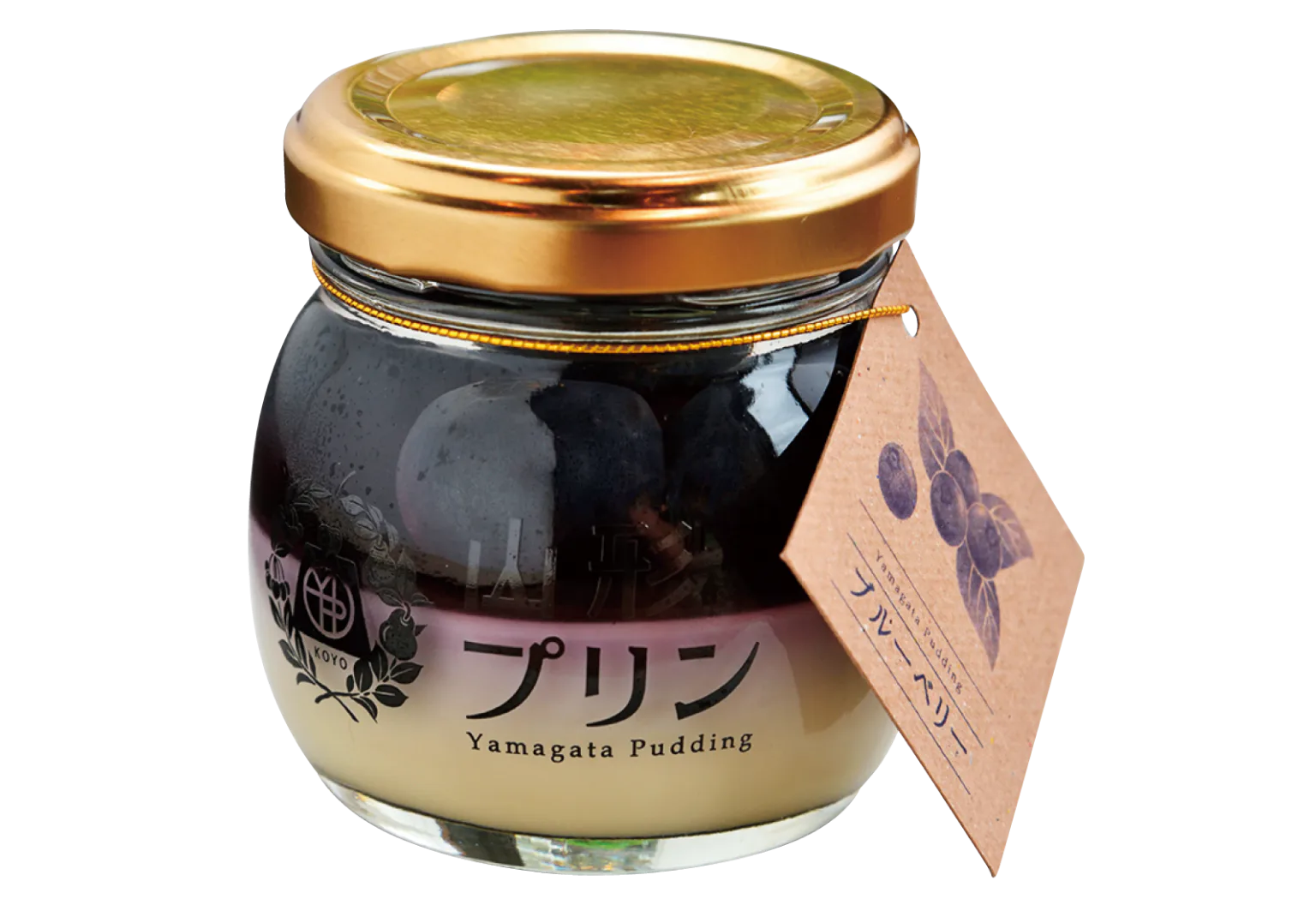 酸味が少なく大粒の県内産ブルーベリーを使用。卵と牛乳の風味が濃厚なプリンとの相性抜群