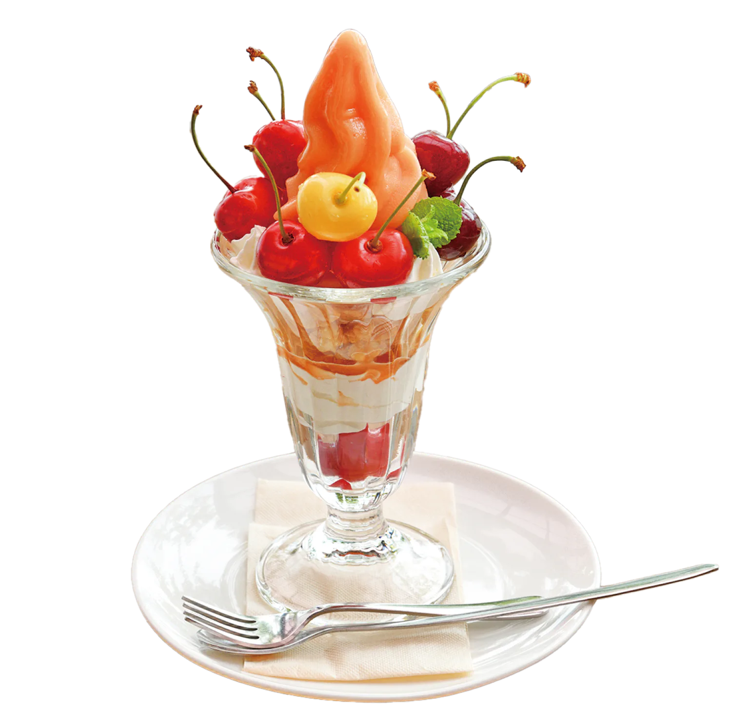 複数の品種を堪能できる贅沢パフェ。食べ比べをしても楽しい。品種や粒の数は時期に応じて変動