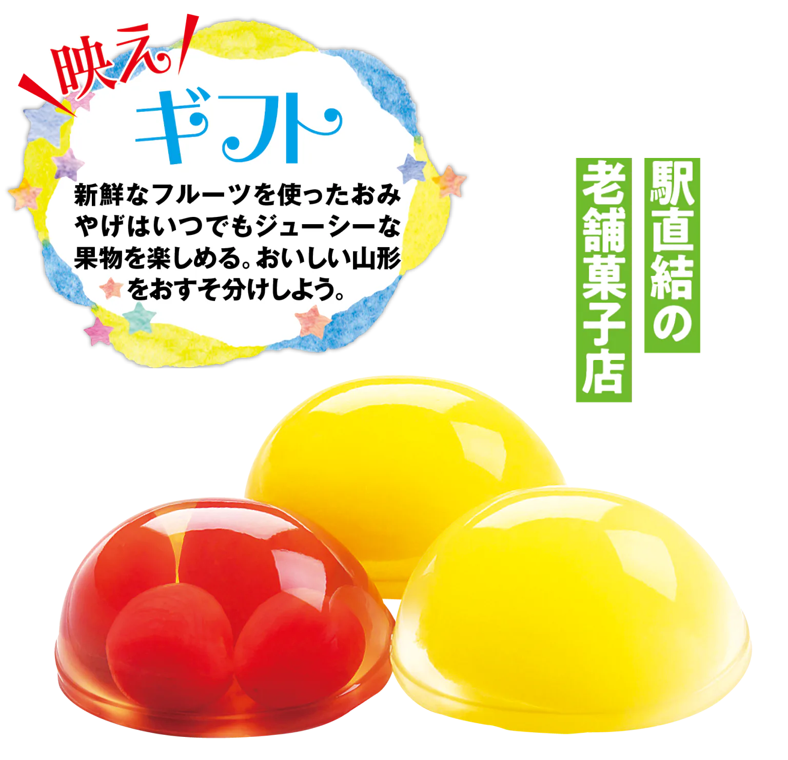 山形県産のラ・フランス、サクランボ、白桃の果肉たっぷり。なめらかな口当たりのゼリー